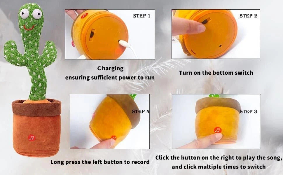 Multifunctional Dancing Cactus Toy – Sings, Repeats, Dances & Lights Up (USB Rechargeable)