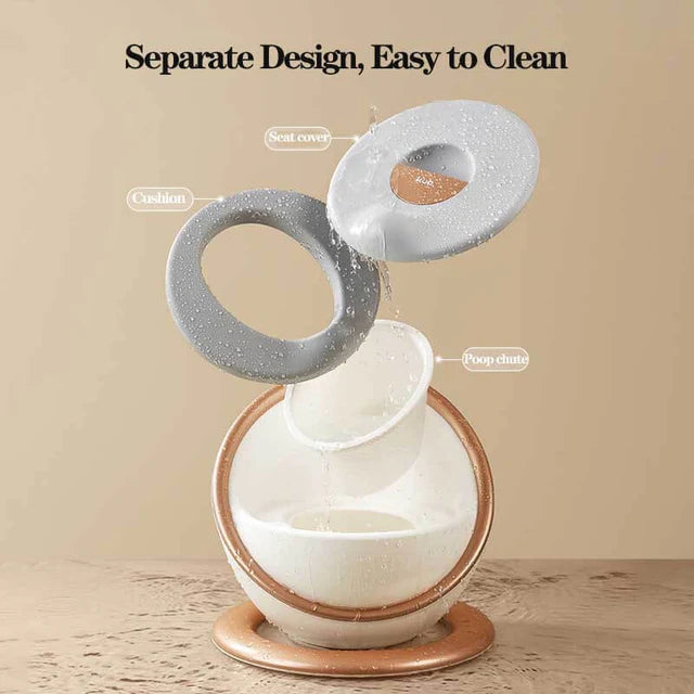 Turn potty training into a comfy little ritual instead of a daily battle. This deluxe pod-style potty chair gives your toddler a secure, cosy seat while keeping cleaning quick and stress-free for you.