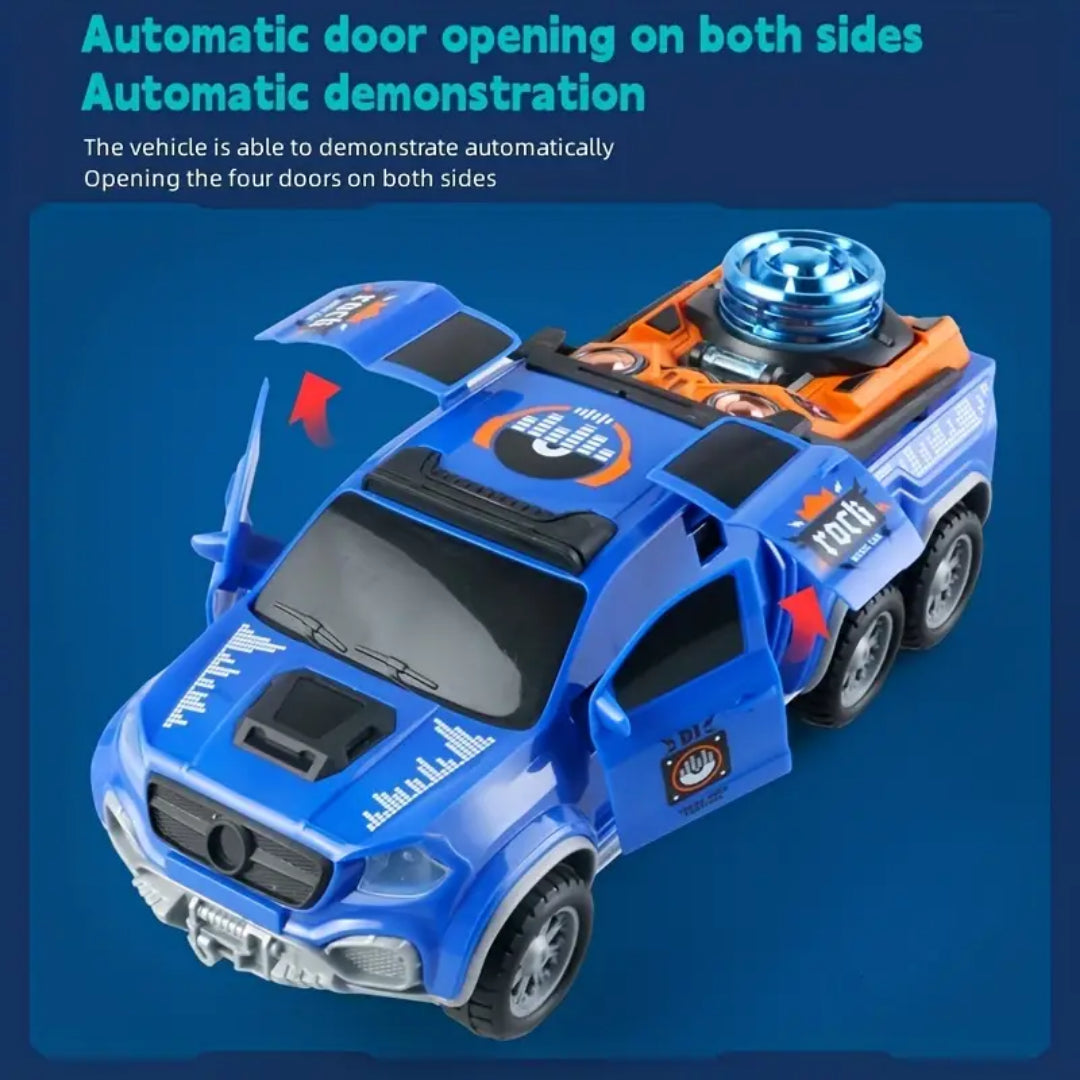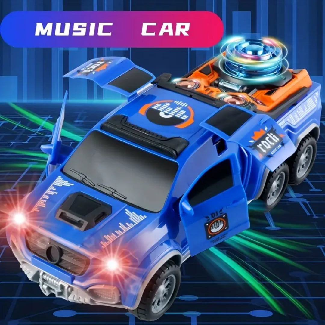 Automatic 6-Wheel Light & Sound Music Car Toy – Opens Doors, Rotates 360°