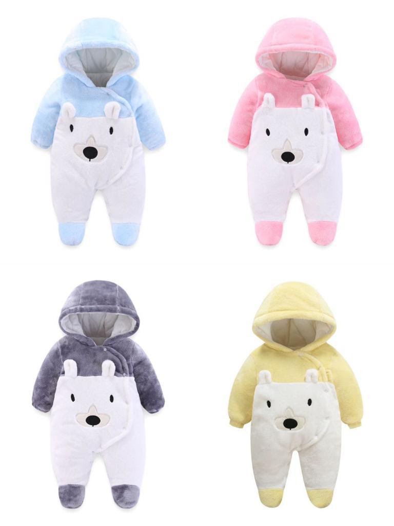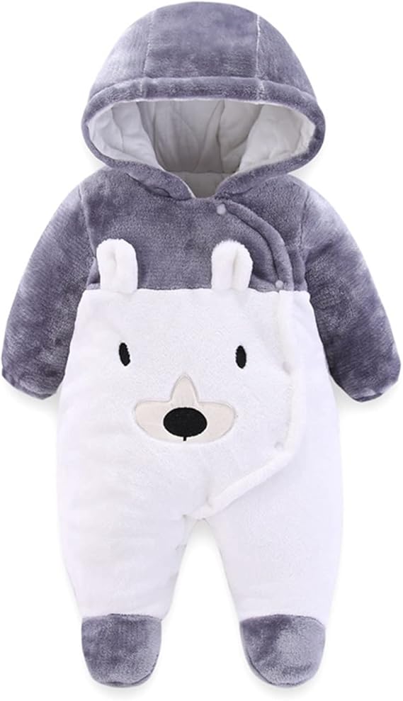 Snuggle your baby in warmth and cuteness with these hooded rompers—perfect for chilly days and cozy cuddles.